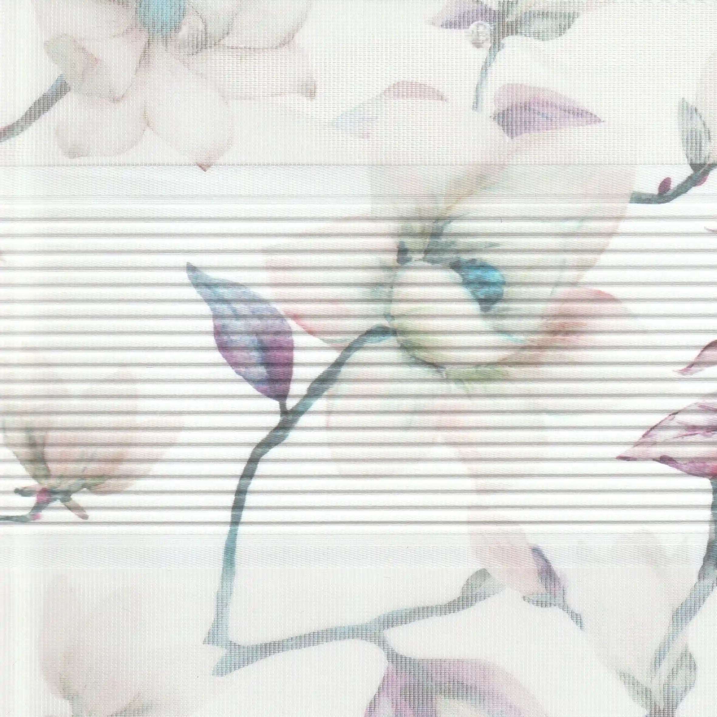 The Calinda collection brings a touch of nature indoors with its graceful flower-patterned duo roller blind fabric.